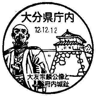 大友宗麟公像、府内城跡