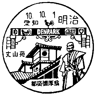 デンパークの正門、丈山苑、都筑彌厚翁の銅像