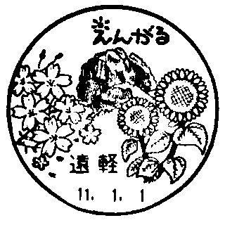 がんぼう岩、町木・ヤマザクラ、町花・ヒマワリ、町ロゴ・えんがる