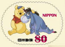 「くまのプーさん」は、100エーカーの森に住む、はちみつが大好きな食いしん坊の愛らしいくまさんです。50円切手は「くまのプーさん」とその仲間たちを音符と絡ませ、楽しくポップな感じに仕上げました。また、80円切手は「くまのプーさん」が住んでいる100エーカーの森をテーマにしたデザインとしています。