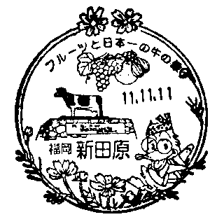 変形印:市花・コスモスをちりばめた枠